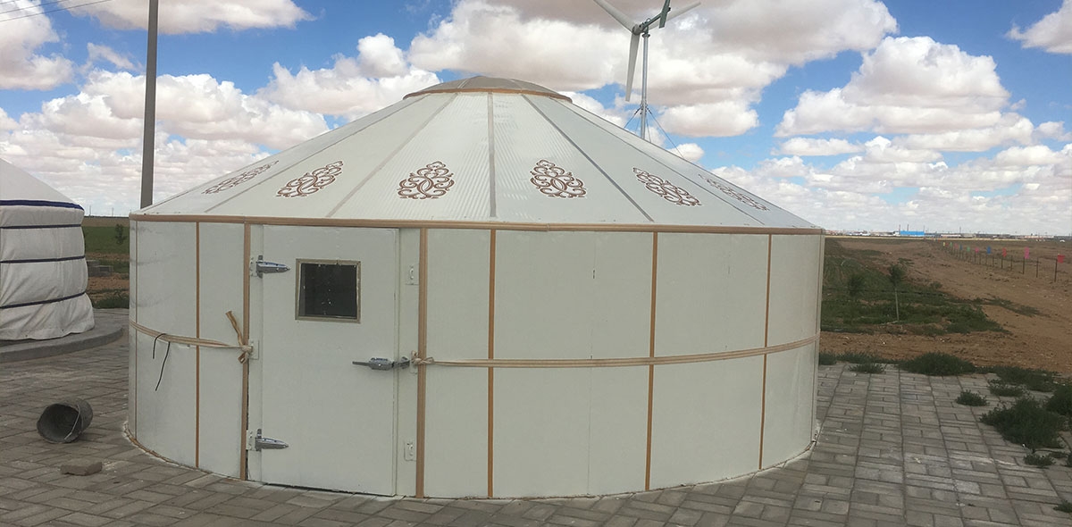 保溫蒙古包是一種新型節(jié)能組合式蒙古包,由150mm厚聚氨脂保溫材料模壓成型。采用組合式結(jié)構(gòu),無龍骨和支架,天窗、頂板和墻面均為預(yù)制結(jié)構(gòu),實(shí)現(xiàn)冬天保暖、夏天隔熱涼爽的效果,同時(shí)具有無毒、隔熱、抗大風(fēng)、防震等特點(diǎn)。該蒙古包安裝方便快捷,可有效地縮短建設(shè)工期,施工難度小,便于拆裝和搬遷運(yùn)輸。保溫、隔熱、抗風(fēng)各項(xiàng)指標(biāo)明顯優(yōu)于傳統(tǒng)蒙古包,其保溫效果是普通磚瓦建筑的40倍,適合高寒野外和草原牧區(qū)等使用;既可作為家庭住房單獨(dú)使用,也可以用于野外極地作業(yè)、軍營或旅游景點(diǎn)、娛樂、餐飲等場所使用。該蒙古包適合配以太陽能光伏和風(fēng)力發(fā)電機(jī)實(shí)現(xiàn)采暖、降溫的零碳排放。